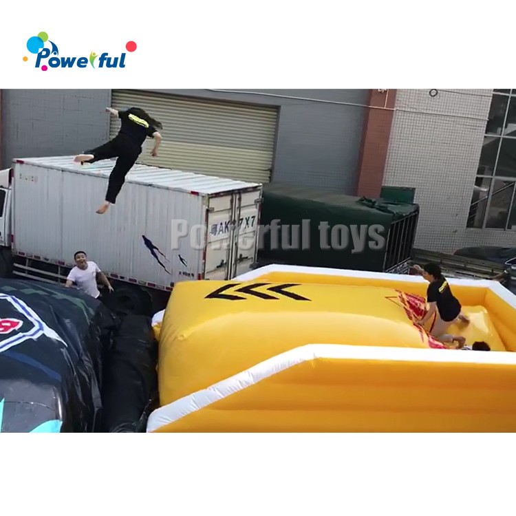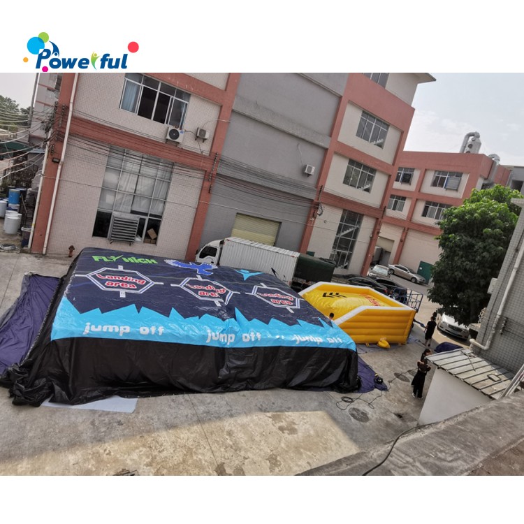 On October 24th, our factory tested a popular net red inflatable jumping airbag, also named the flying air bag. The airbags size is 6m long by 3.5m width by 2m height, use 0.55mm pvc tarpaulin of plato.
