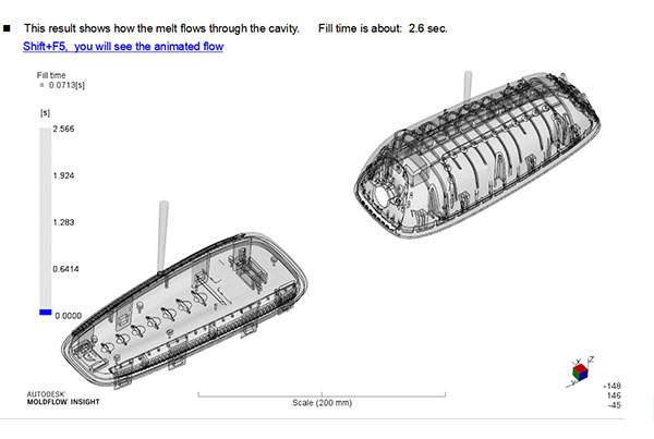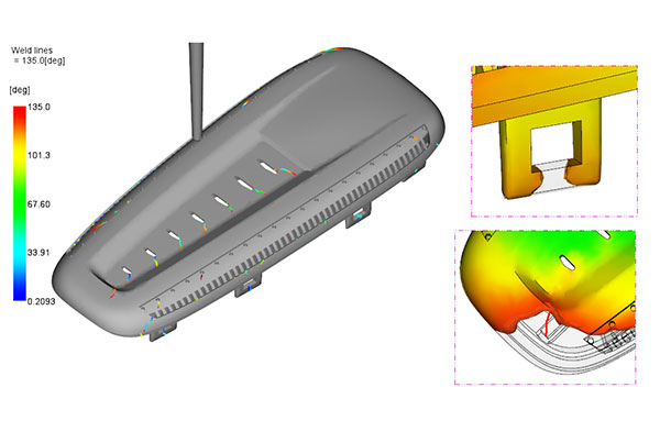 Analysis Purpose | Validate potential problem after the part and mold design Check the fill balance pattern, weld line, air traps, and predict the needed clamp force and injection pressure, warpage. |