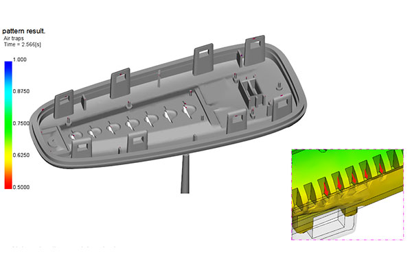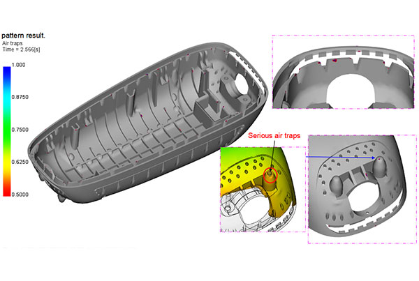 Most of the air trapped appear at the edge of part and the tip of ribs that is easy to vent