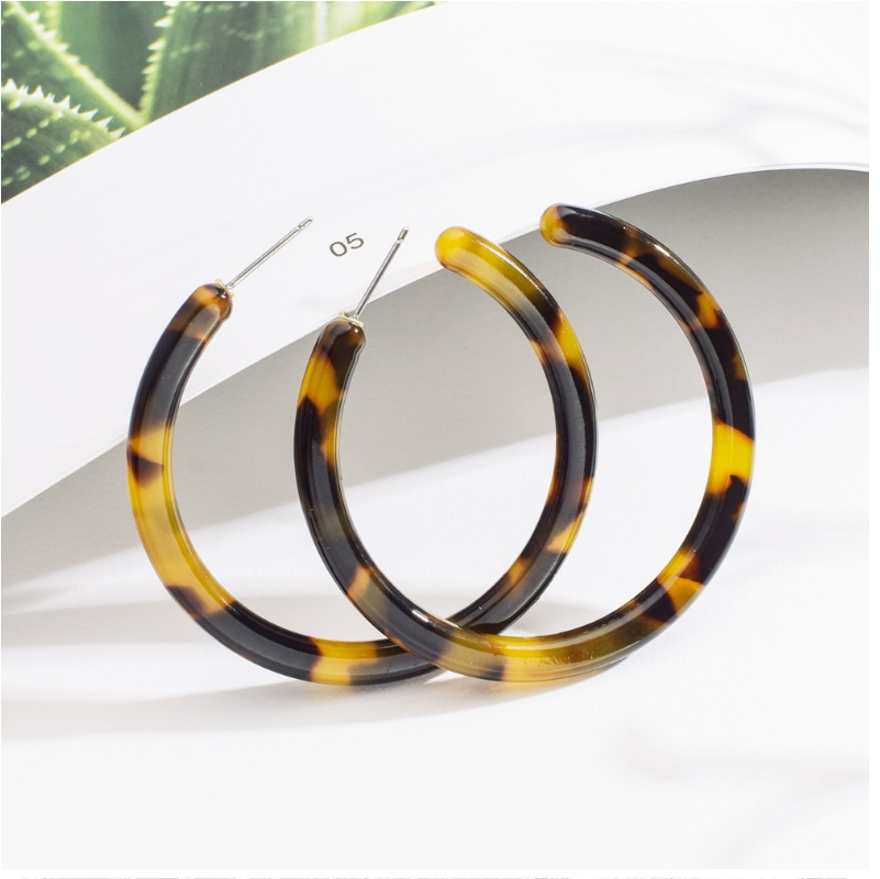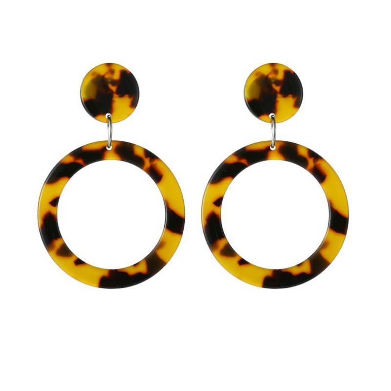 Tortoiseshell Acrylic Resin Round Hoop Earrings