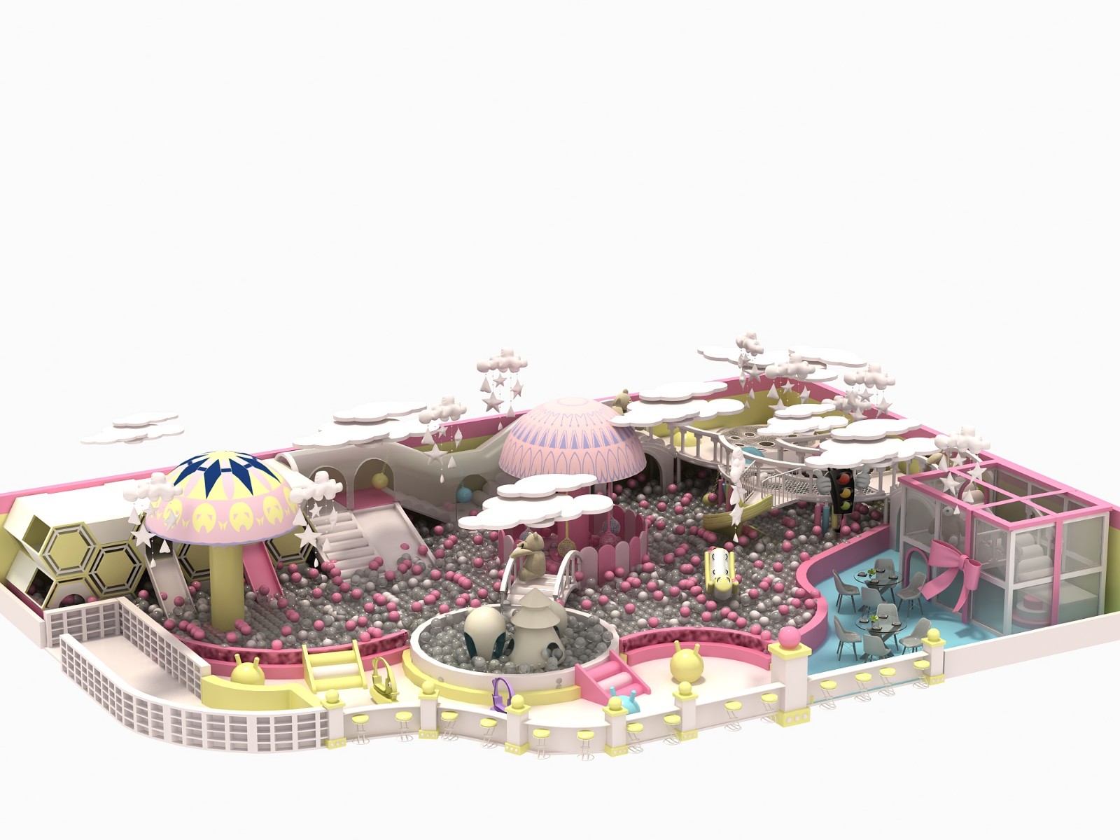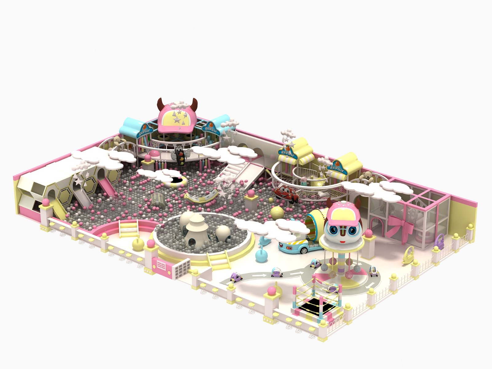 Candy theme children's indoor playground in the overall shape design highlight cartoon style, different from the traditional children's indoor playground style specifications, colorful candy, cake, ice cream and other delicious constitute the theme park, inspirational for the children to create a lovely and magical candy world.It is equipped with a variety of comprehensive children's amusement facilities and cute cartoon design, which brings great impact to children's vision. It can not only imprint a variety of concepts on children's impression, but also help children form a good character and promote their physical and mental health growth in the future.
