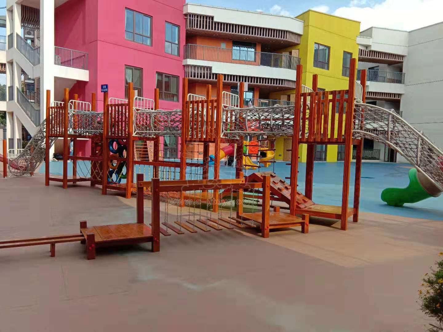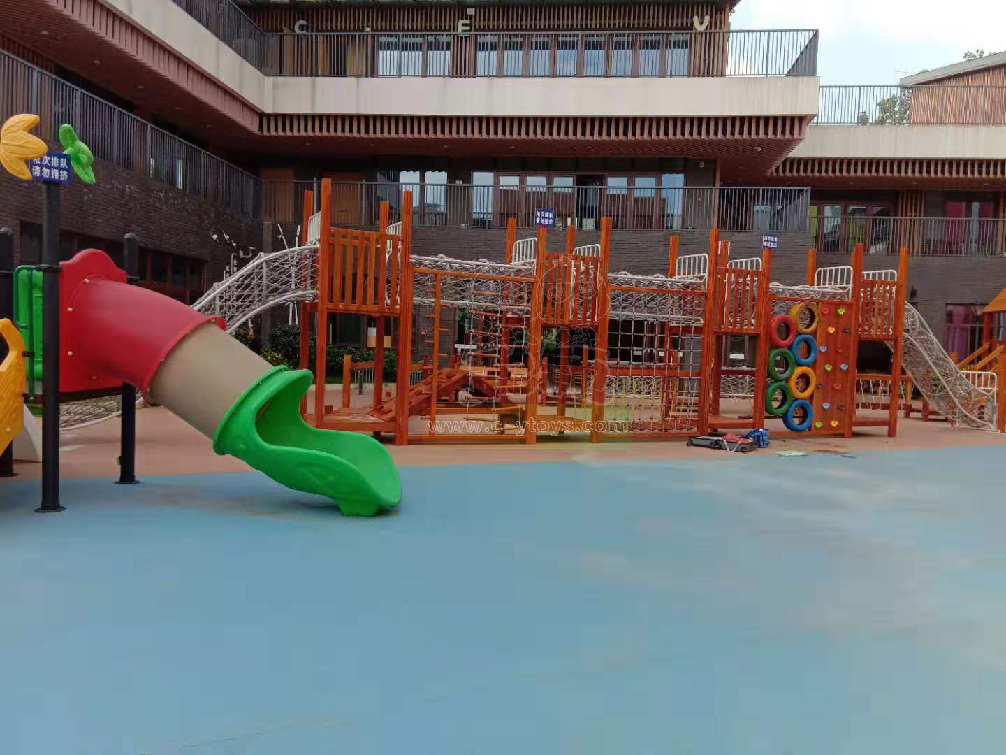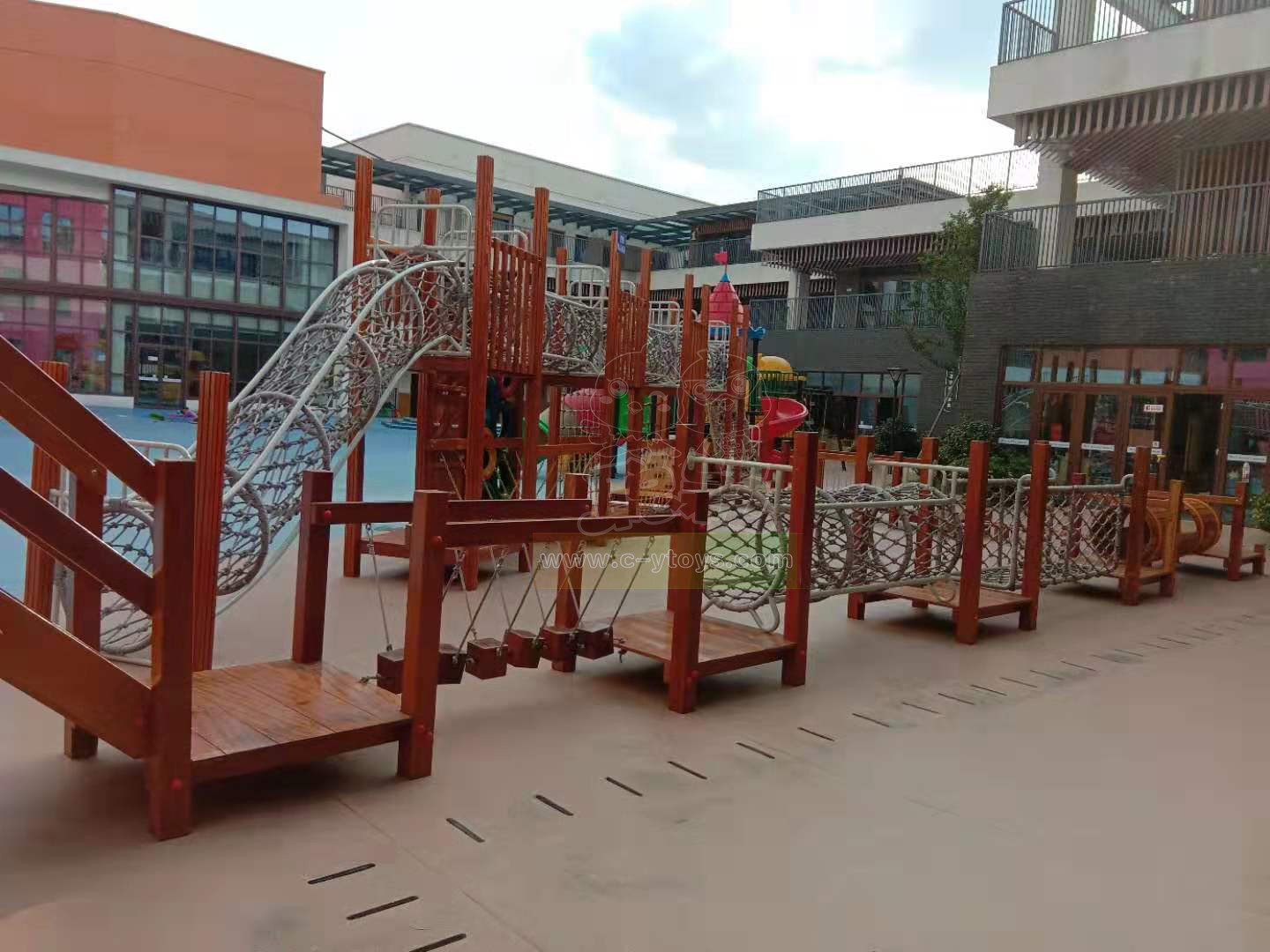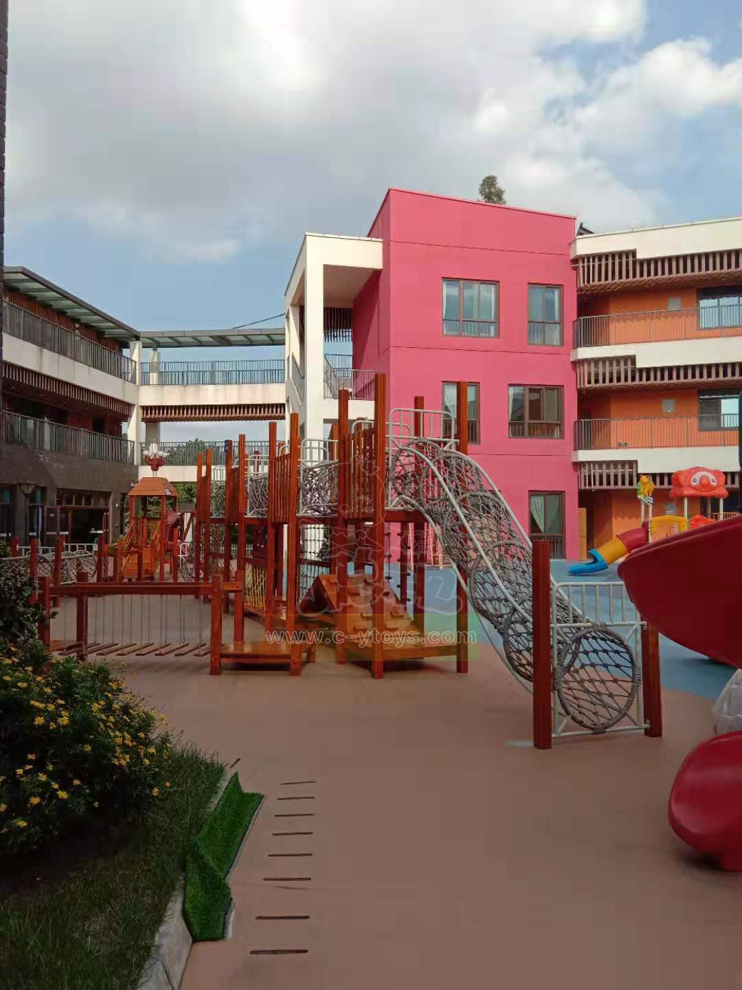 Not high wooden climbing equipment, multi-level design, let the child brave to take the first step to try, exercise their courage and balance.Release your nature in play.