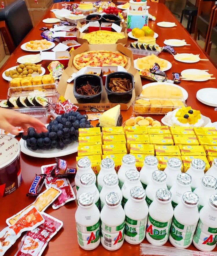 A cake, a symbol of a united collective;A small snack fruit drink, sweet and sour through a caring heart;The heart because of the collective and wonderful, the collective because of the heart and proud.