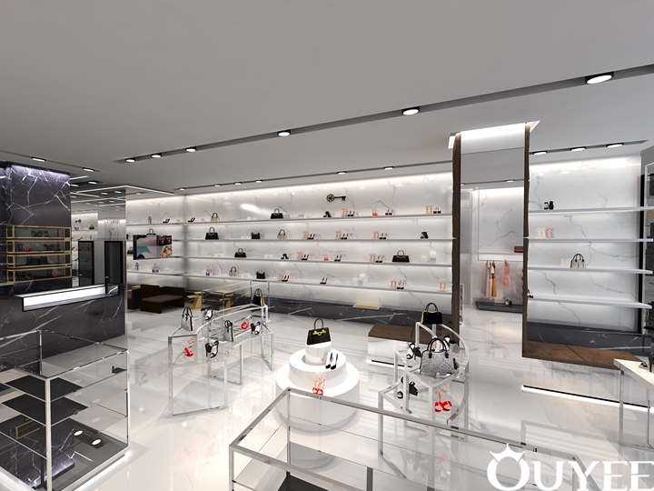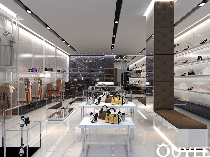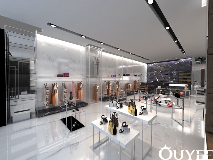 The product selection includes the latest in international trends and the mainstays of luxury design houses for women and men including Gucci, Off-White, Dior, Christian Louboutin, Balenciaga, Acne Studios, Miu Miu, Saint Laurent, and more. In order to accord with the luxury theme, the main material of these display of Colton's Shop are natural marble.