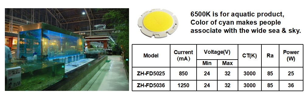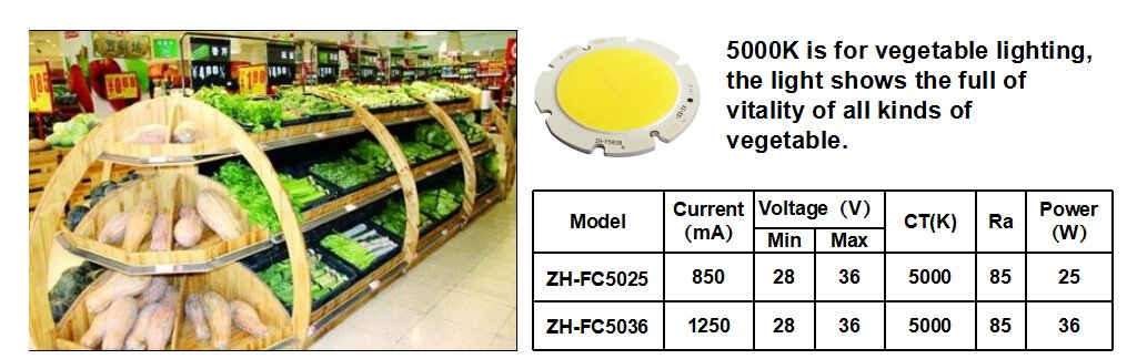 Different emphasized spectrum of the COBs for different lighting area: