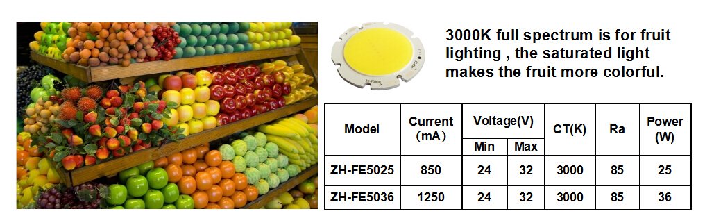 Fresh market lighting source as Evercore specialty products, the sales volume of this year is also ahead of other types of products. Evercore fresh market lighting source has the characters as follows: High color rendering index, high lighting efficiency; even and soft light, no spots; lower heat radiation, efficiently extending the self life; health and environmental friendly.