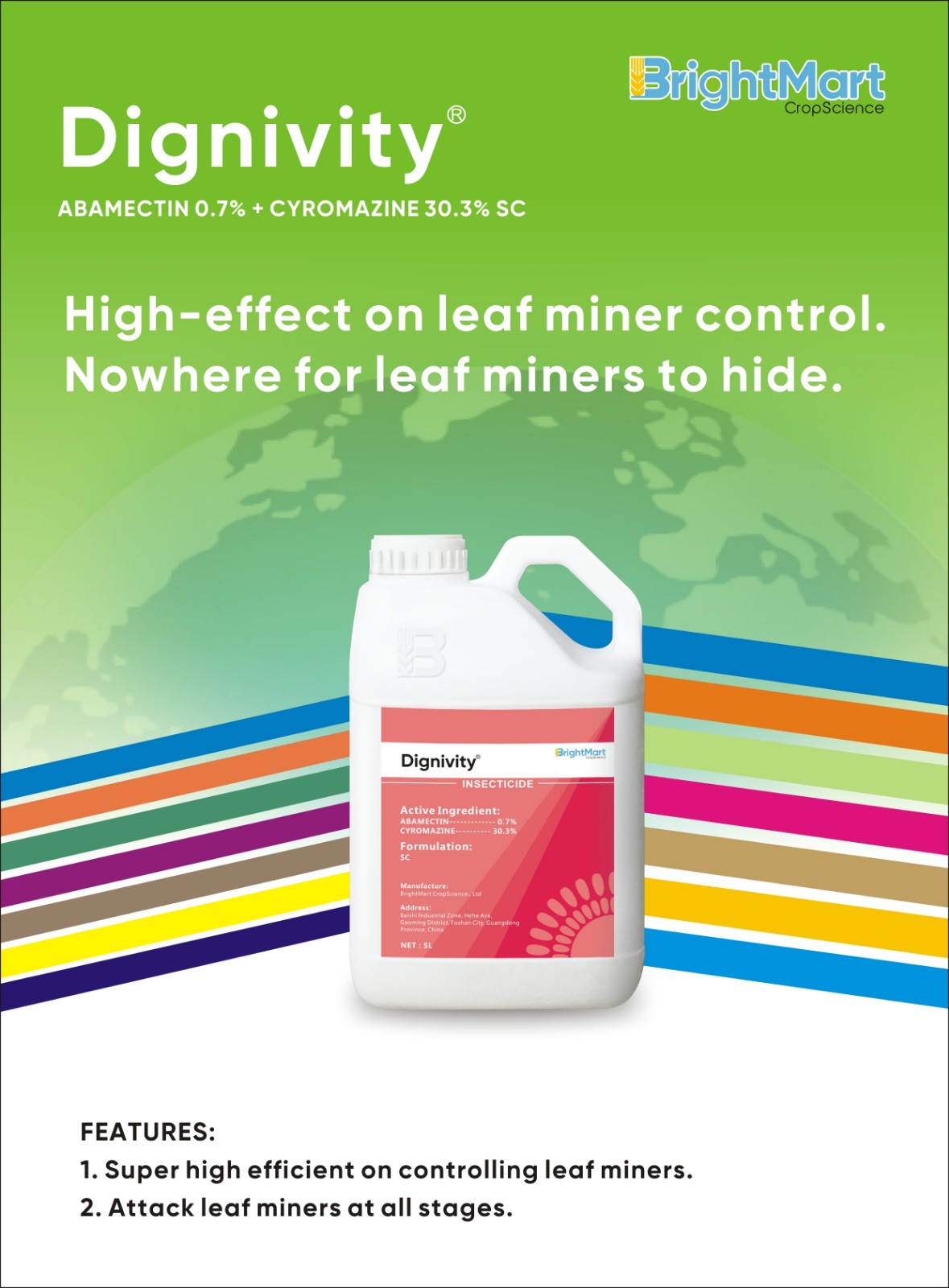 First and foremost, excellent permeability. ‘Dignivity’ can penetrate quickly into leaves after application. Therefore, it is super high-efficient on controlling leaf miners at all stages.