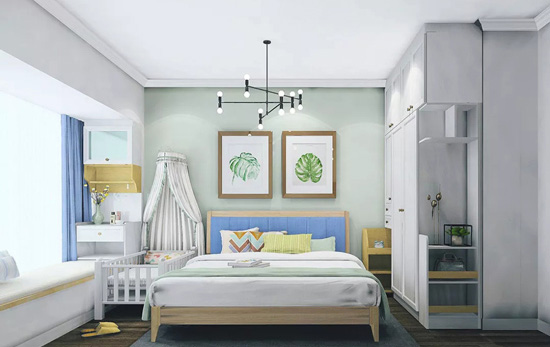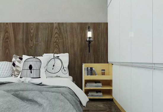 ▲If you are worried that the bedside cabinet will occupy the baby bed space, you can customize creative combination wardrobe, which has a pull-type bedside cabinet, at any time hidden to save space.