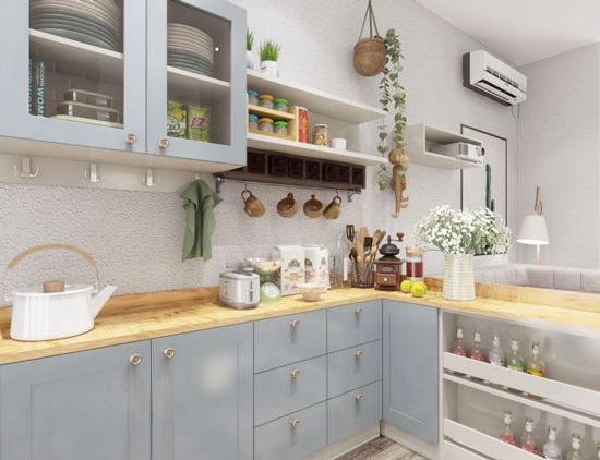▲Many mothers like to store milk powder and need a special storage space. The hanging cabinet on the sideboard is just right. The milk powder can be operated on the counter of the sideboard. Remember to reserve a socket so that hot water can be prepared in time. It's better to install the induction lamp again, so as not to be in a hurry if you can't see clearly.