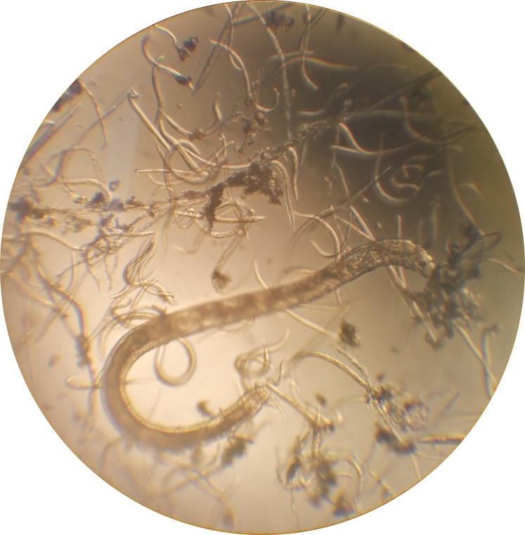 Abundant root-knot nematodes were found in soil. Rice root-knot nematodes are small and invisible to the naked eye. It mainly parasitizes roots and absorbs nutrients from plants. Root-knot nematodes irritate roots and cause plant tissue to swell.