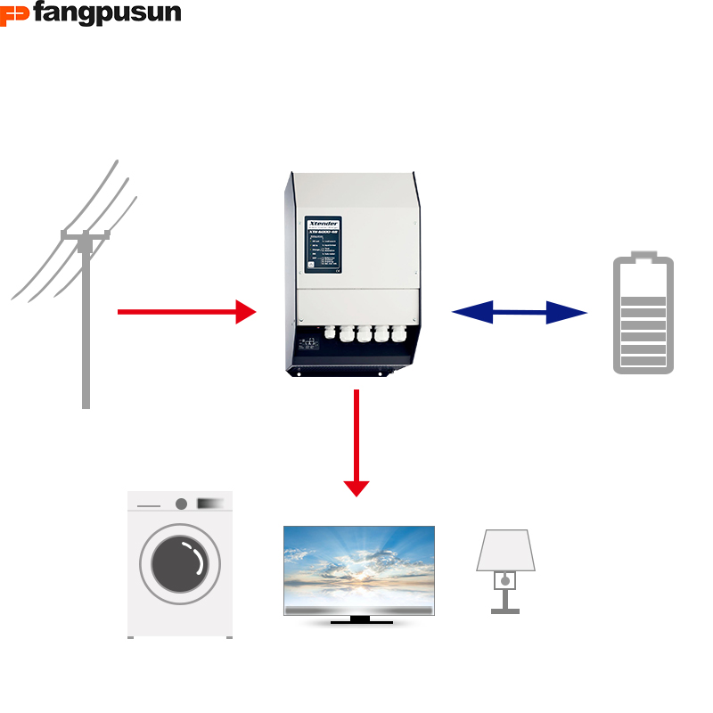 The XTH hybrid inverter developed by fangpusun company has a wide range of applications. The XTH hybrid inverter is used to transform the power grid and realize the uninterrupted conversion of household power and transmission mode. The inverter protects the user's power supply. When the power grid is cut off or cut off, the xth-ups hybrid inverter is used, and the ultra short transmission time is not more than 15 milliseconds. Allow the home load to run to no phases without any interruption.