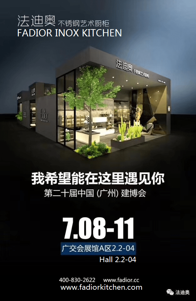 Fadior Inox Kitchen-1st brand of stainless steel kitchen cabinet brand, carcass and countertop made in china and all other accessories imported from Germany. supply durable and healthy kitchen to all families worldwide will attend CBD fair Guangzhou(china Guangzhou international building decoration fair) on 8th-11th July in Pazhou exhibition center. Fadior will launch 2 new design of wardrobe and 3 new design of kitchen during this fair, all the new designs match for the demand of the market recently and trend of new generation. Fadior inox kitchen is the only company in stainless steel kitchen industry which make RD and design by ourselves in china, and launch new technology and new design each year. This is the big difference between Fadior stainless steel kitchen factory and other competitors. Welcome all the friends come to visit and taste the newest trend of home furniture.