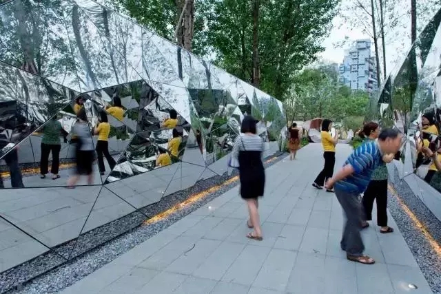 Mirror stainless steel can also be used in the retaining wall, reflective effect can interact with people, but too much use will cause a sense of tension, moderate use, but become a scene embellishment.