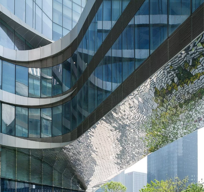 Mirror stainless steel, can be used as ceiling, under the illumination of light, the surrounding landscape is reflected, there will be a feeling of shining waves, if we do some lighting design in detail, it will show a colorful visual sense.