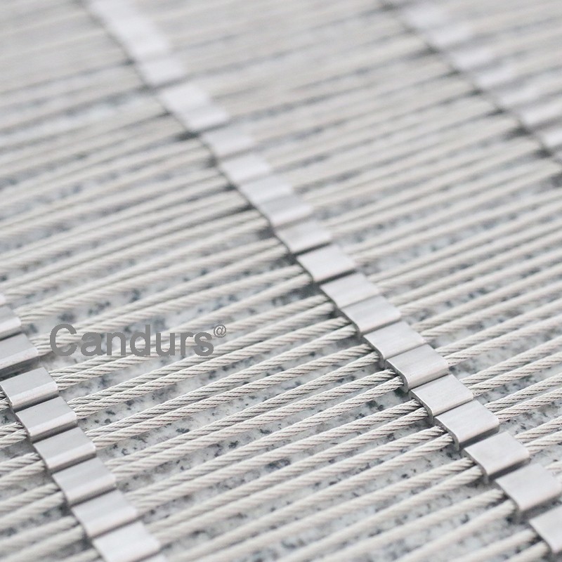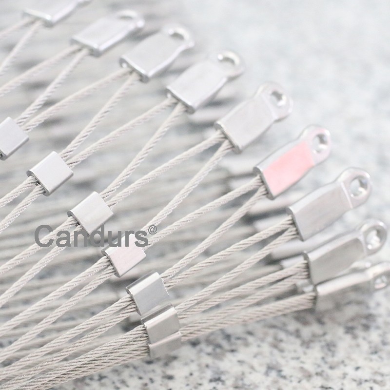 Mesh : CD1550 is Candurs stainless steel wire ropeferrule mesh,made from 1.5 mm stainless steel cable.7 x 7 rope structure.mesh opening 50mm (OW)x 90mm .