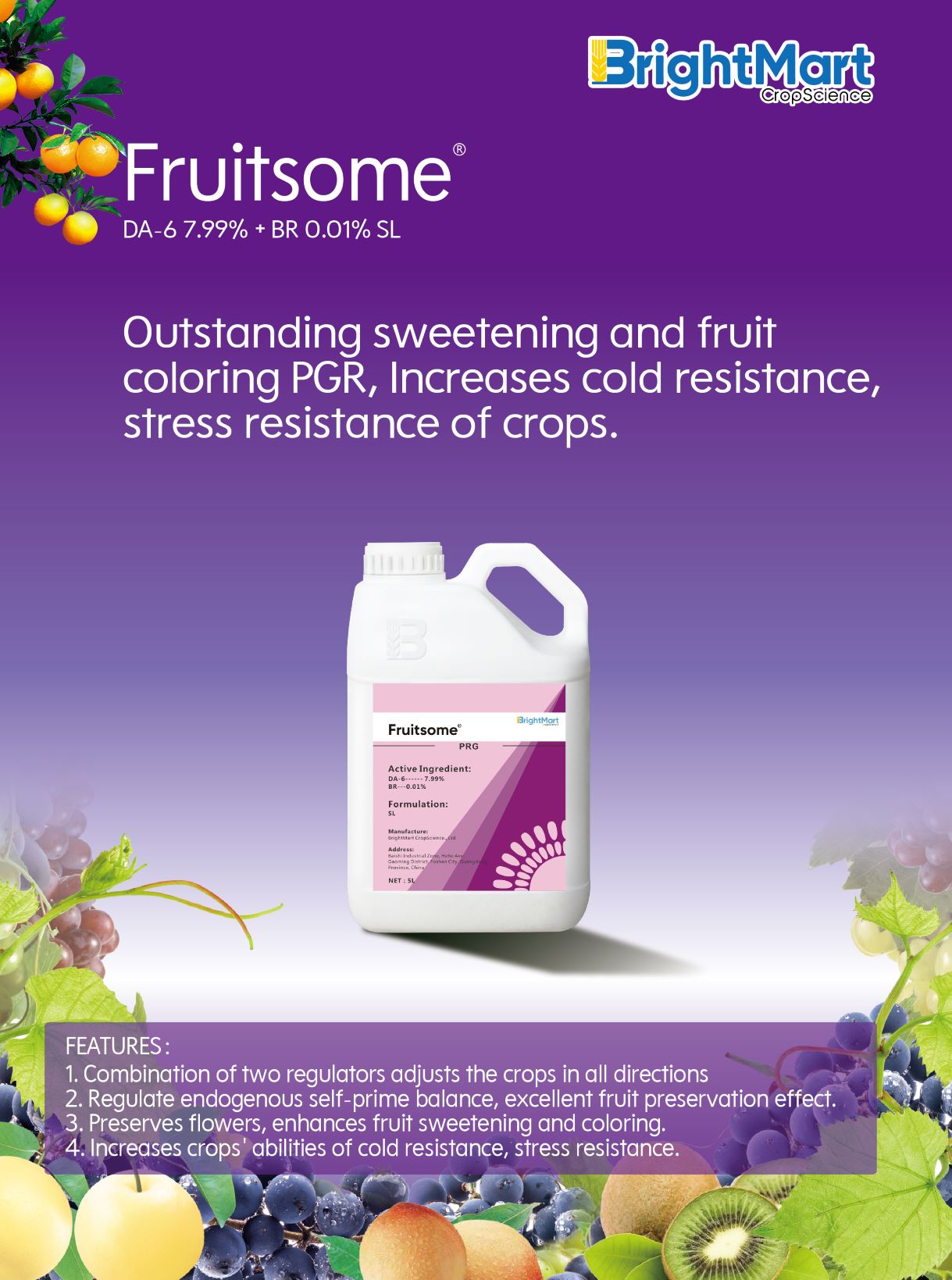 As one of the biggest crop-protection providers in China, BrightMart CropScience will continue to innovate and develop better products to contribute to citrus industry development lead to a brighter future.