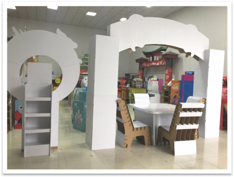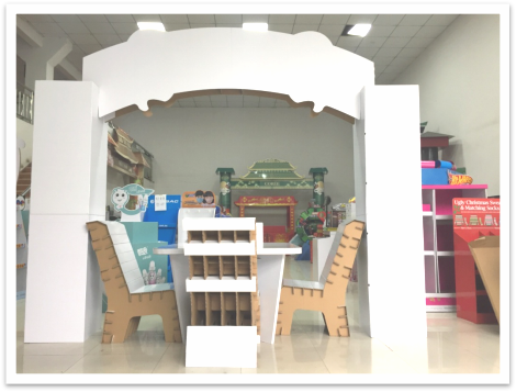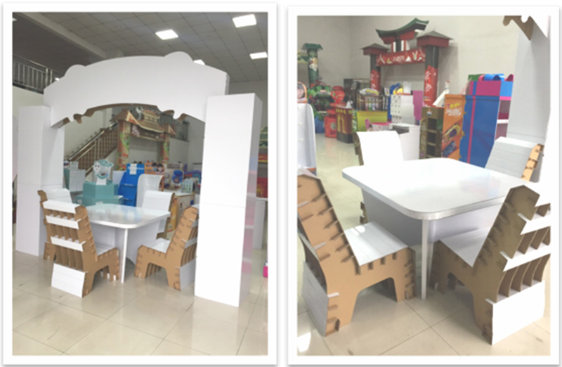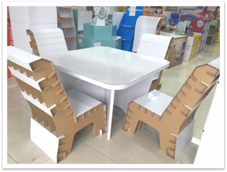 The table and stool made of cardboard are comfortable and useful, you can print products info. and company brand on the table and stool to achieve the effect of brand promotion.