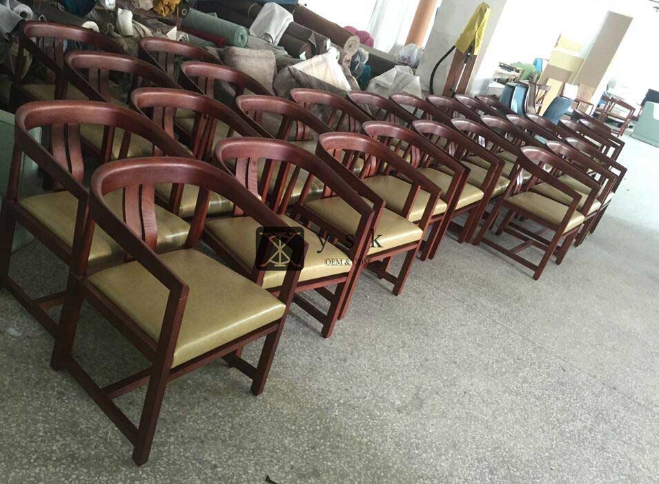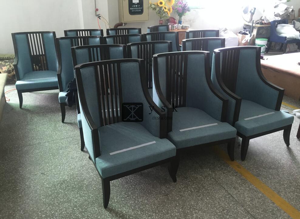 Chinese style wood furniture customized for Hyatt hotel, solid Ash wood with good quality and comfortable fabric & Microfiber leather, inside is durable and high density foam.