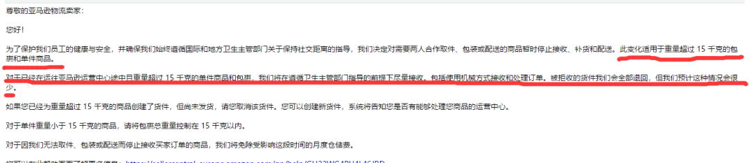 On March 26, amazon Europe sent an email to inform us that the single FCL package with more than 15kg will not be received. Amazon means that all the goods that have been delivered should be received. Please do not send such large goods to those that have not been delivered.