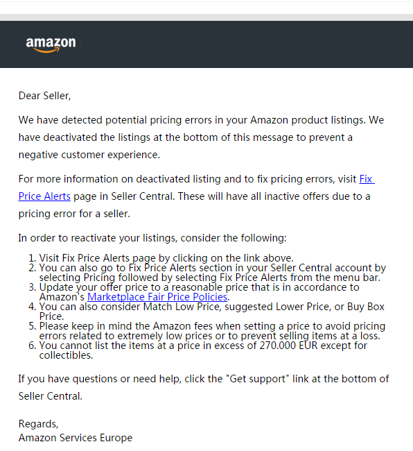 Amazon reviews a large number of behaviors of excessive price, does not limit the epidemic prevention category, sends an email to ask for price reduction of products with excessive price, or directly suspenders the link. You should not make frequent changes to the price recently, or it will lead to the removal of the shelf.