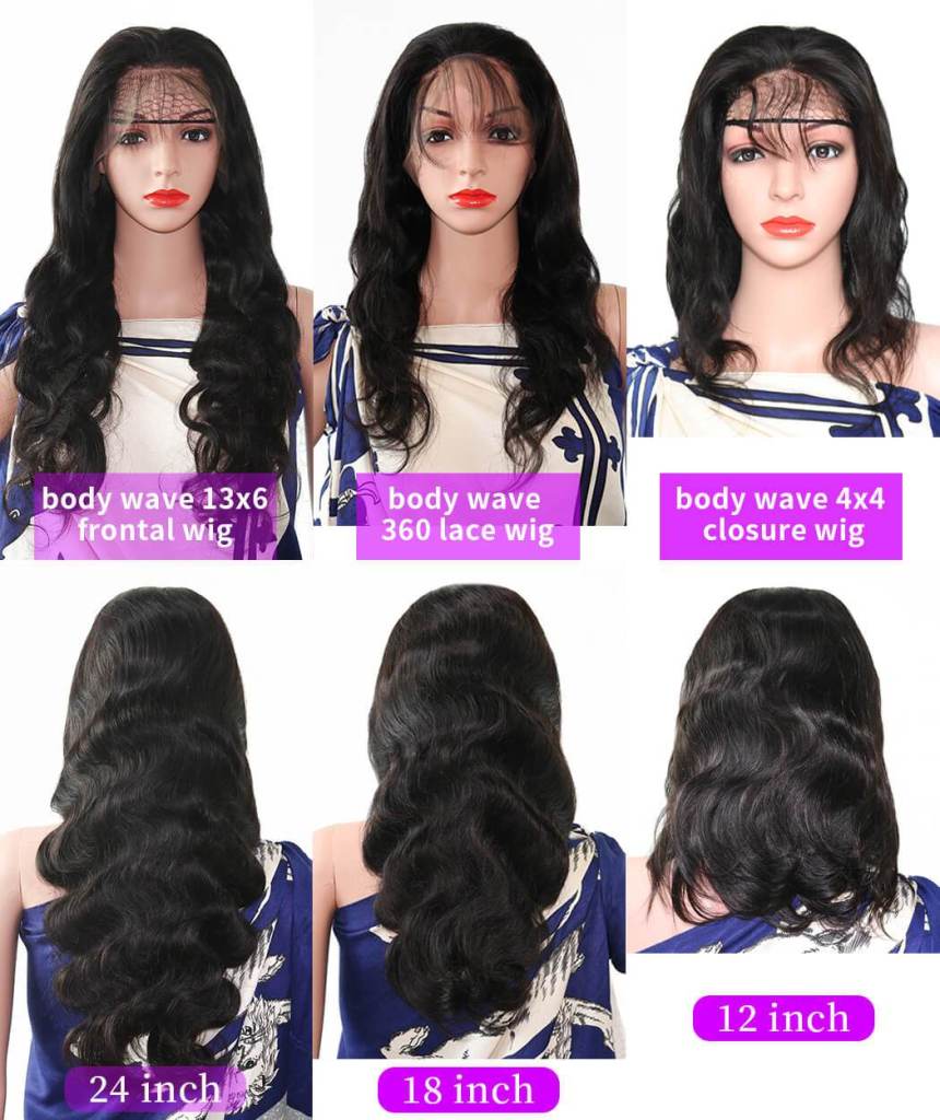 We offer body wave,deep wave,straight,kinky curly,loose curly,loose wave hair. You can customize a wig with your unique choice.Match the wig with 4by4 closure or 13by4 frontal. Frontal wig,closure wig and full lace wigs are available.12-30 inches available.