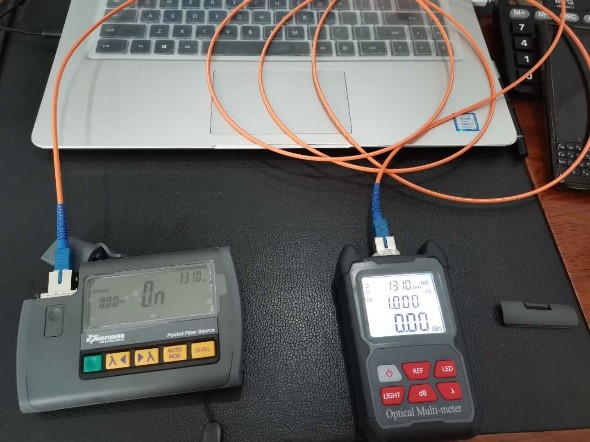 2.Connect the Kingfisher light source and the calibrated optical power meter with FOT3234 optical fiber jumper.