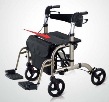 Baskets positioned low on the rollator frame may be difficult to reach.