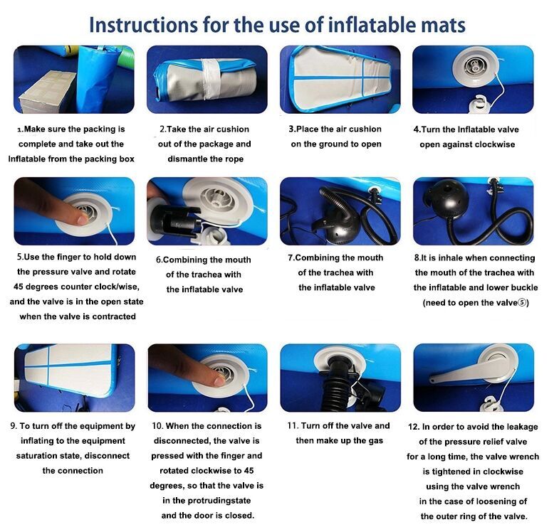 Step 1. Take out the inflatable air track from strong PVC bag and take out electric pump from carton.