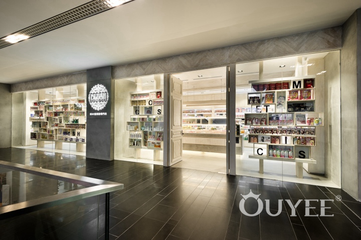 Based on a simple and modern concept, the store uses pure-color wood as the main material, with warm and soft tones to create a simple and warm atmosphere. Some geometric elements, such as the the walls, vertical surfaces of the shop, geometric display space, the layered alcove on the wall and the linear chandelier on the ceiling, make the store's decoration looks neat , mixed but not confused. The quaint decor makes the cosmetics store even more distinctive. The cosmetics store is decorated with yellow as the main decoration style, which greatly show the luxury atmosphere of the store. The indoor structure with clear lines is extremely simple and neat.