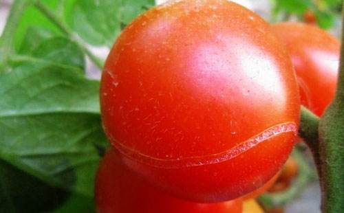 When deformed fruits enlarge rapidly in late stage of fruiting, uneven skin thickness causes uneven tension on fruits skin, lead to fruits cracking.