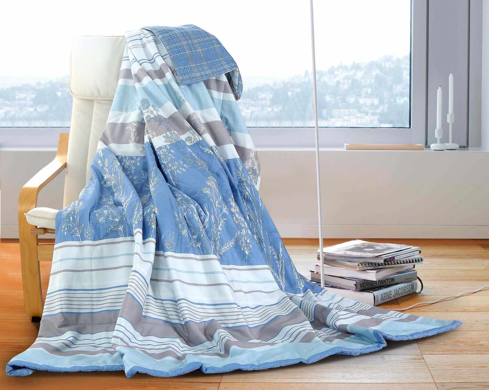 The color of comforter can affect people’s perceived temperature. High temperature makes people restless. They feel comfortable and emotionally stable in a cool color environment. Blue, purple, pink, etc belong to the cool color.