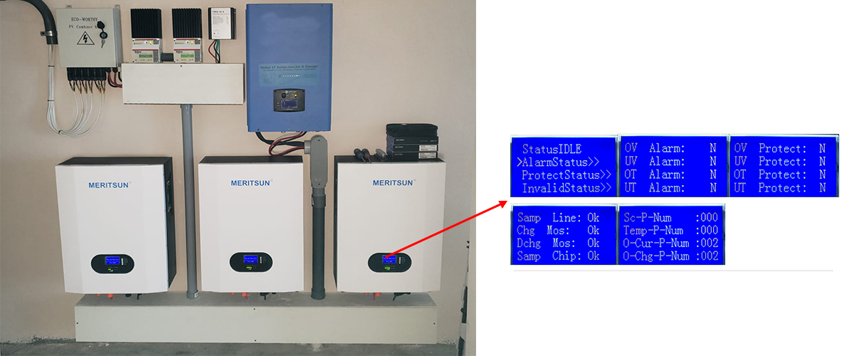 Q: For Meritsun ESS 48V200AH Lifepo4 Battery, the LCD state OV, why have this situation, how should I do?