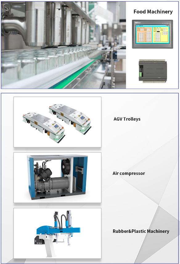 Applications: Environmental engineering, agriculture, forestry and animal husbandry (aquaculture), intelligent construction, rail transportation, vehicle manufacturing, electronic manufacturing equipment, textile machinery, packaging machinery, printing and packaging, engineering machinery, HVAC machinery, plastic machinery, food machinery, AGV trolleys, air compressors, rubber and plastics machinery, etc.