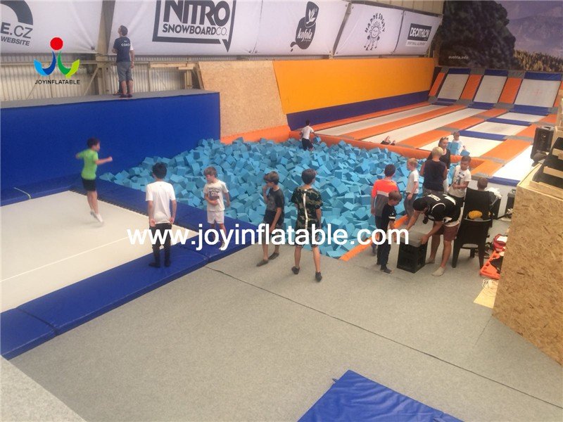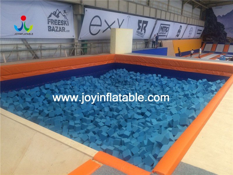 A trampoline park except with professional coaches, coaching and training exercises to ensure that you are more professional and safe while playing handsome.The most important is protection now a lot of people like put the inflatable air bag on the foam pit to replace the foam . Or made the double protection , put the inflatable stunt air bag on bottom of foam pit and the foam cubes on top to made the landing more comfortable .