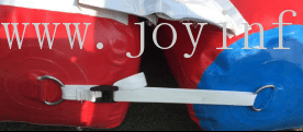 Once you have inflated all elements,place them one by one on the water near the shore,and connect them according to the plans of the park.Use the D-rings located at the bottom of individual elements and the securing straps that join them for this.(see Figures 13-14-15-16).