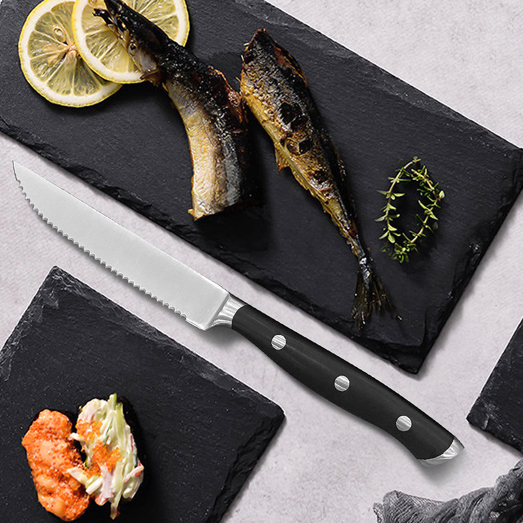 Blade material: When choosing your steak knife set, you might need to investigate the material in which the cutting edge is produced using. Realizing this can help with the sort of care that is required for those blades. At YipFung, we offer different sorts of steak knife materials. To make this simpler on you, I will concentrate on two of the all more requesting materials, high carbon steel, and treated steel. High carbon steel is one of the better metals you can use for a knife. The sharpness keeps going longer than most materials, and the recurrence of honing them is far less frequent. In any case, hardened steel is an extraordinary material on the off chance that you are searching for a knife that won't rust. The consideration for these is straightforward, and the blades cut great!