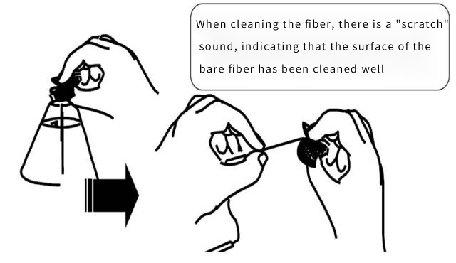 Before fusing the optical fiber, it is very important to clean the skin after stripping it off and before cutting the optical fiber. This removes debris and other possible contaminants from the stripping process.