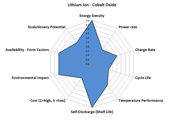Commonly known as 'high energy' cells, LiIon LiCo2 cells use a metal oxide cathode of lithiated metal oxide (LMO) and offer among the highest energy density figures, by weight or volume, of the commercially available Li-ion families. Other metal oxide cathodes have been developed, but none have seen the commercial adoption of the LiCo2 cathode.