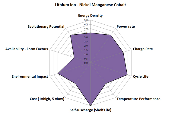 Lithium Nickel Manganese Cobalt cathode Battery - Li(NiMnCo)O2 brings together the high energy density of LiCo2 and the rate capability of LiMn2O4 to create a cell with moderate energy density and good power delivery. The reduction in Cobalt also helps reduce cost and improves safety.
