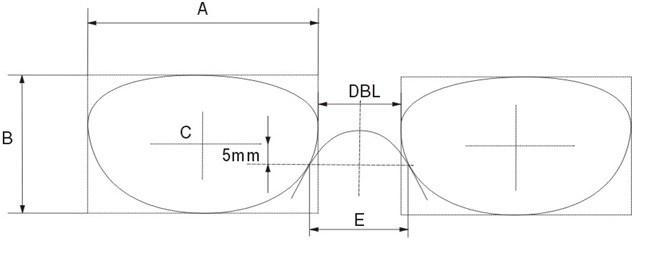 B – Vertical boxed lens size.