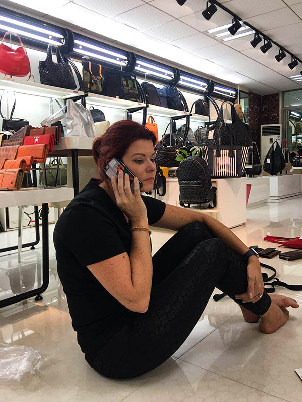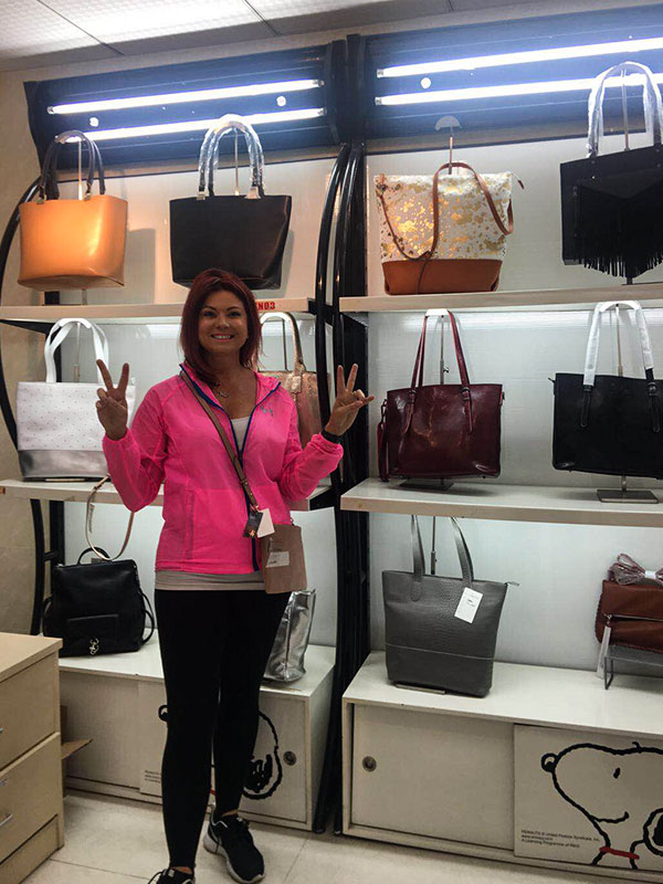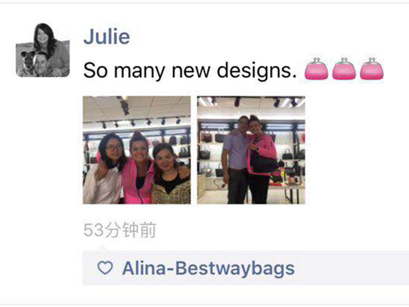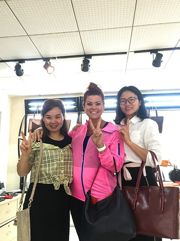Julie one of our old customer fro more than 3 years, she is from South africa, she is pretty and nice. She is doing bag and shoes business, it's doing split leather bag with us. Her customers like metallic leather textures a lot, before she come to visit us, we prepared some new color swatch for her. And she has some bags on production nearly finished, we had a meeting on May 8,2019, she come to see her production bags also selected the new development for new material souricng and bag designs.