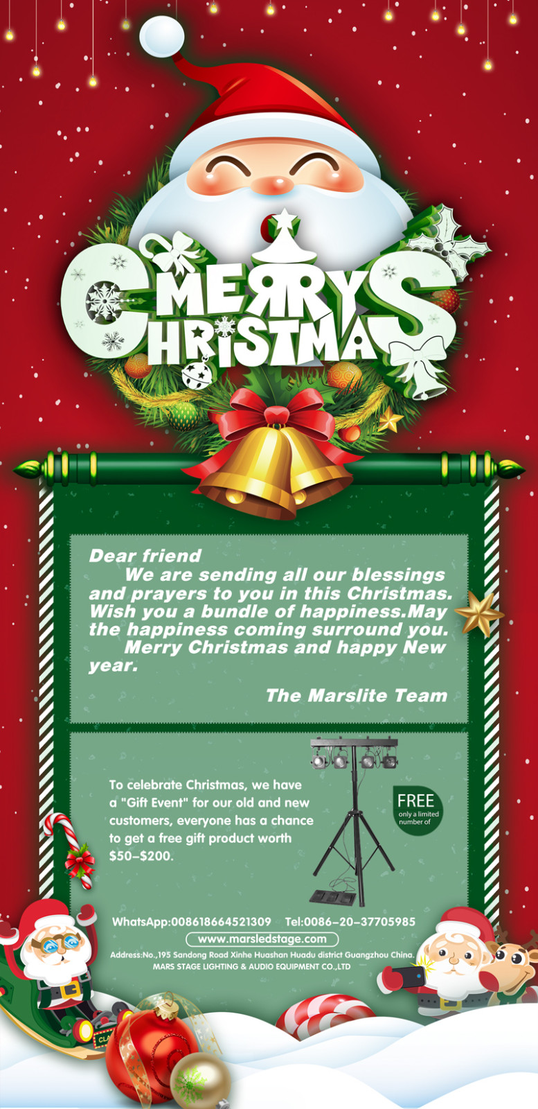 I wish you all a Merry Christmas, in order to celebrate Christmas, our company has a send free stage lighting activities, come and understand and participate.