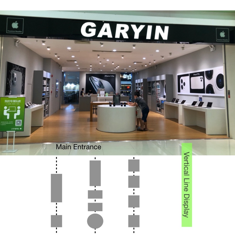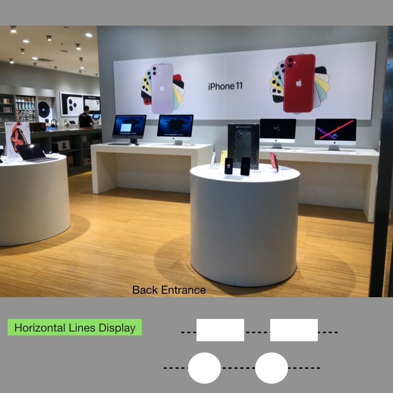 The best-selling products are placed near the main entrance of the store, and the accessories for mobile phones and computers are placed far away from the entrance. That kind of display is obvious - at first glance, iPhone is the best-selling product. In addition, other major products such as iPad and Macbook are on the left and right sides of the main entrance.