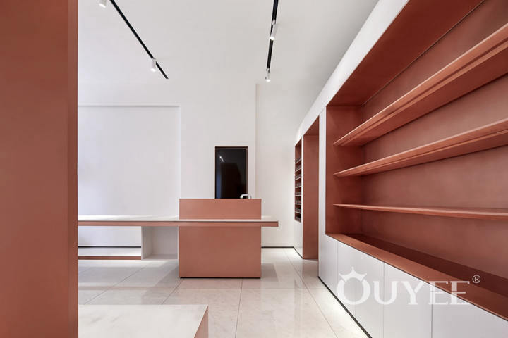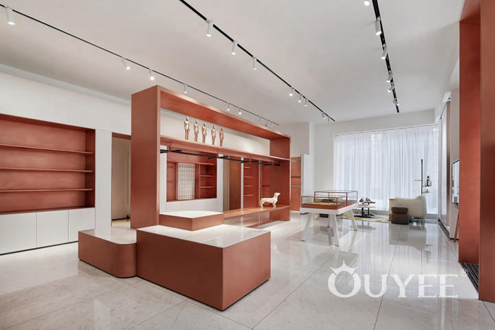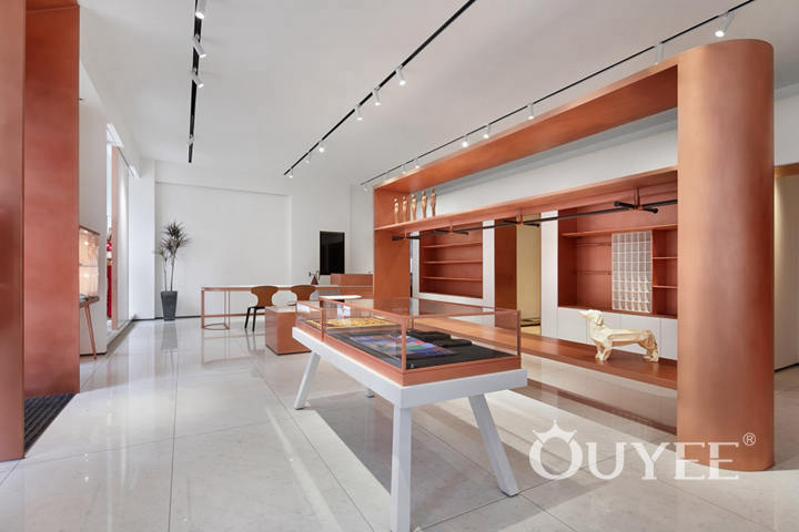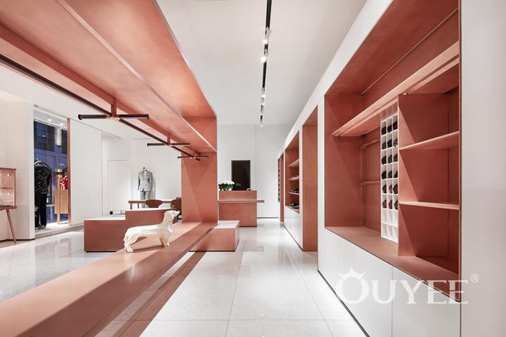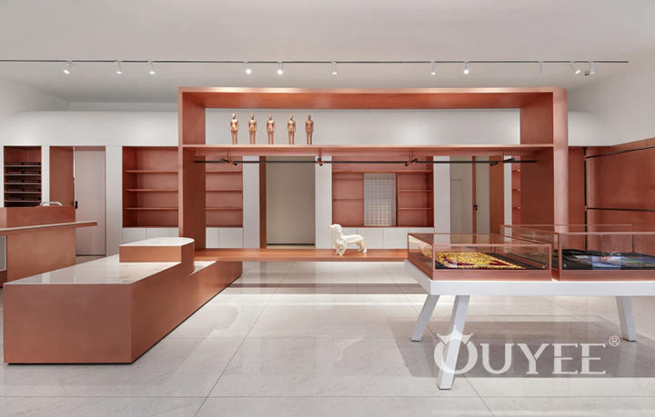 In order to better reflect the clothing itself, in the selection of materials and colors, the designer uses a large number of white latex paint and copper, forming a strong visual impact, reflecting the noble temperament without losing the sense of fashion. It can also guarantee the timeliness and cost performance of the store.