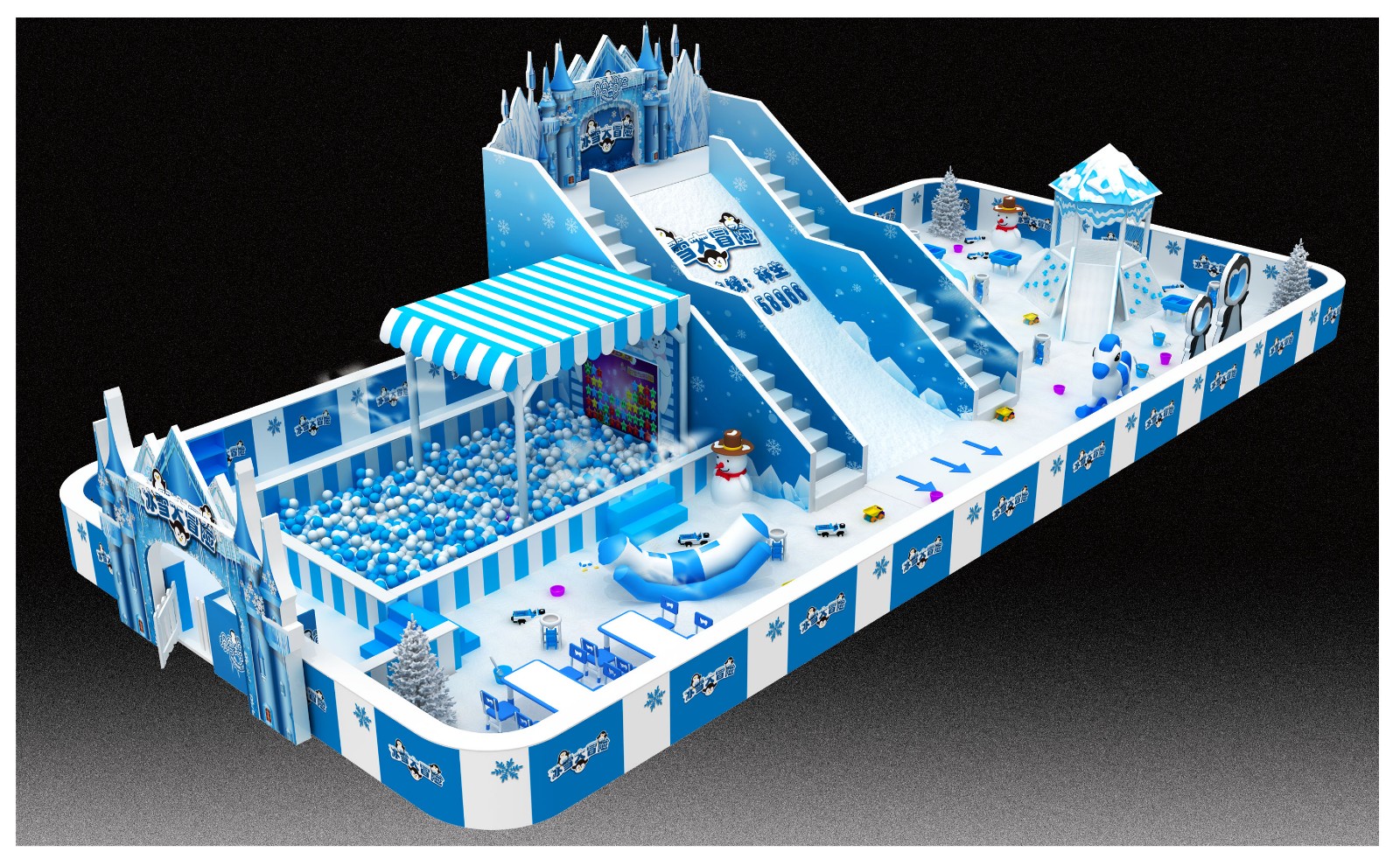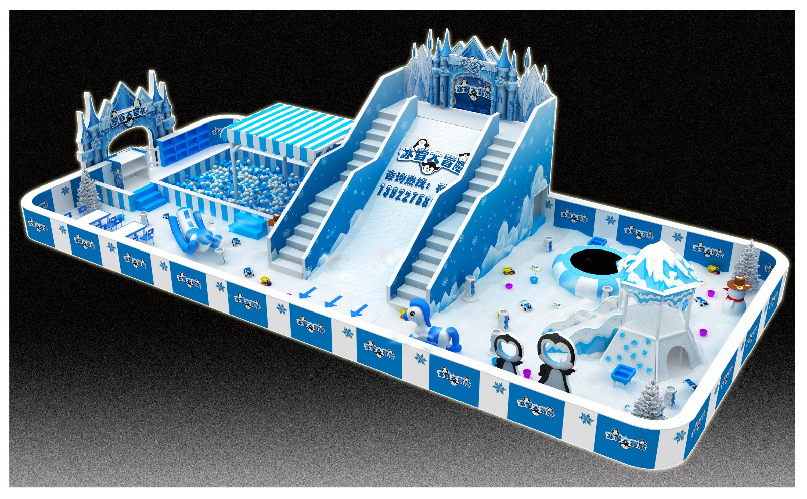 Theme positioning: snow and ice theme has always been popular among children because of its image and vivid simulation environment.Based on the traditional theme of indoor playground, creative