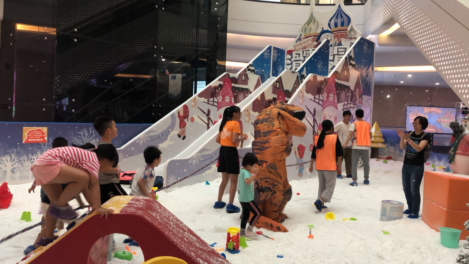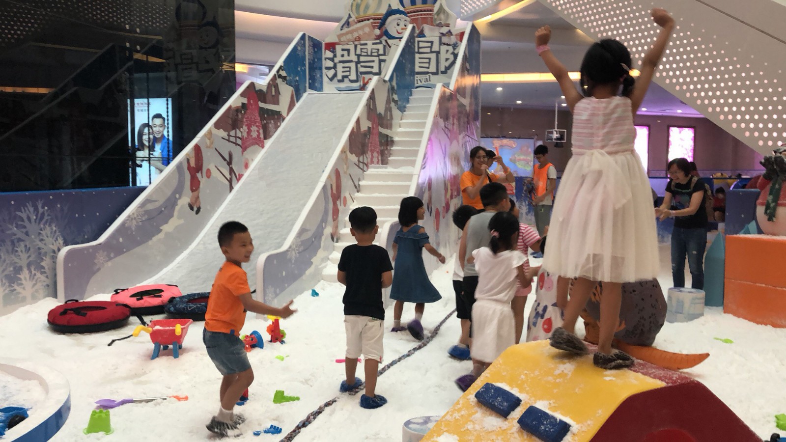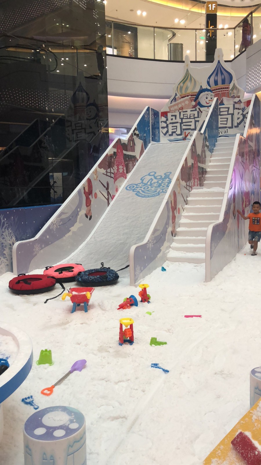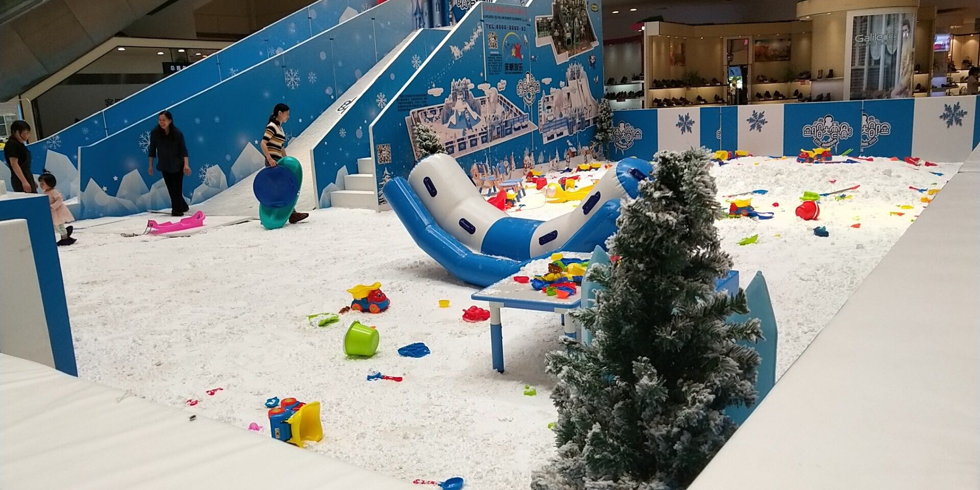 The ice-blue ocean ball, snow-white artificial snow, high slide, all deeply fascinated me