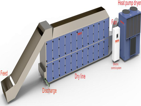 2.energy saving, low drying cost the heat pump drying machine equipment is fully automatic control, continuous operation, high thermal efficiency, energy saving 30%~45% than the conventional fuel drying system.