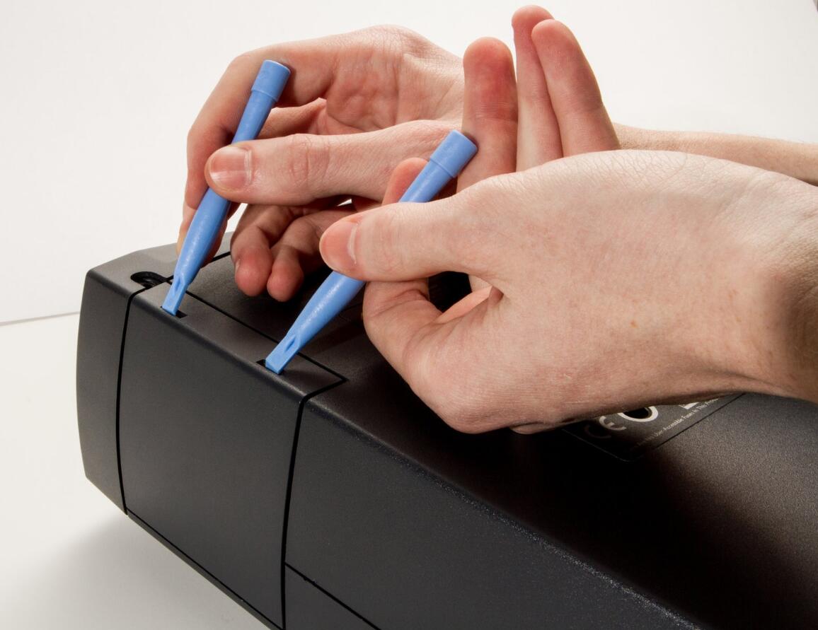 l Use the plastic opening tools to push down the clips holding the lamp cover in place, and remove it.