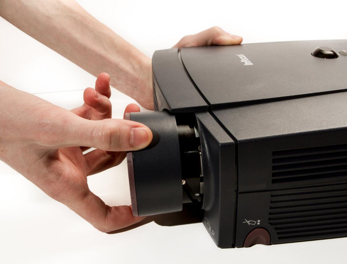 l Place the projector on its back (buttons down) with the lens facing away from you.