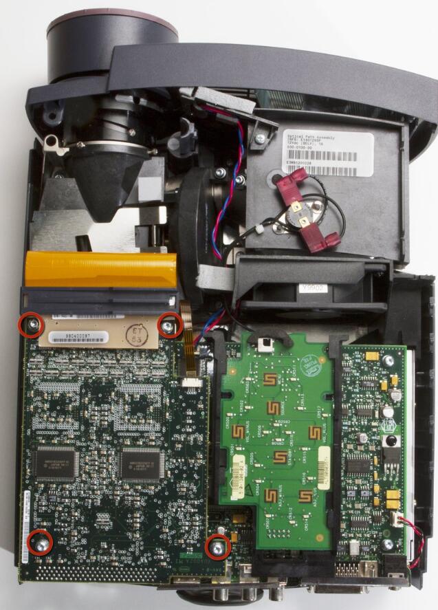l Remove the four T10 Torx 8.5 mm screws holding the DLP board in place.